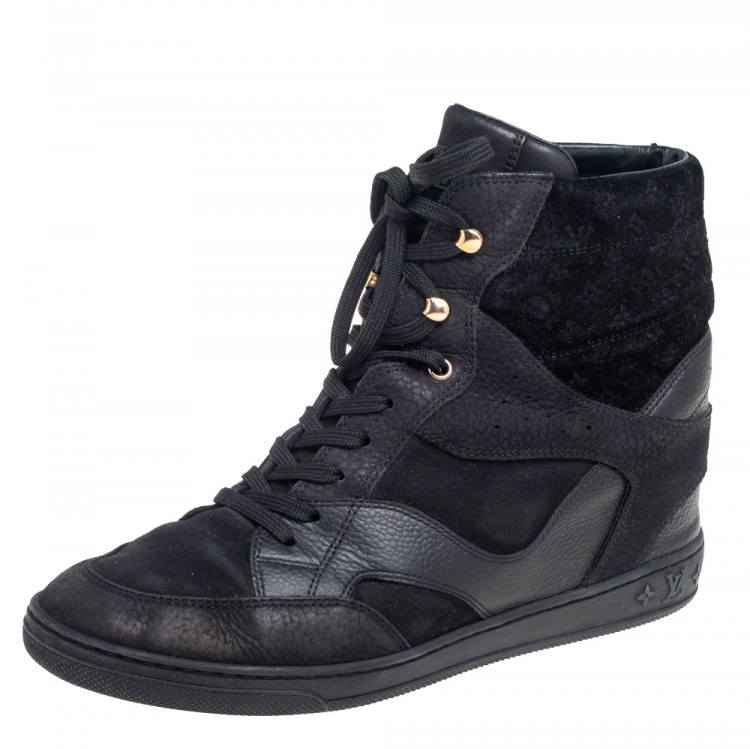 حذاء رياضي لوي فيتون ميلينيوم سويدي نقشة مونوغرامية أسود كعب روكي مقاس 39.5