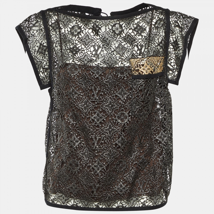 Pre Owned قميص لويس فيتون دانتيل معدني أسود مقاس متوسط