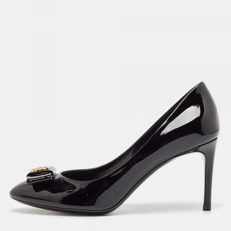 Pre Owned Louis Vuitton Black Patent Leather Bow Pumps Size 36