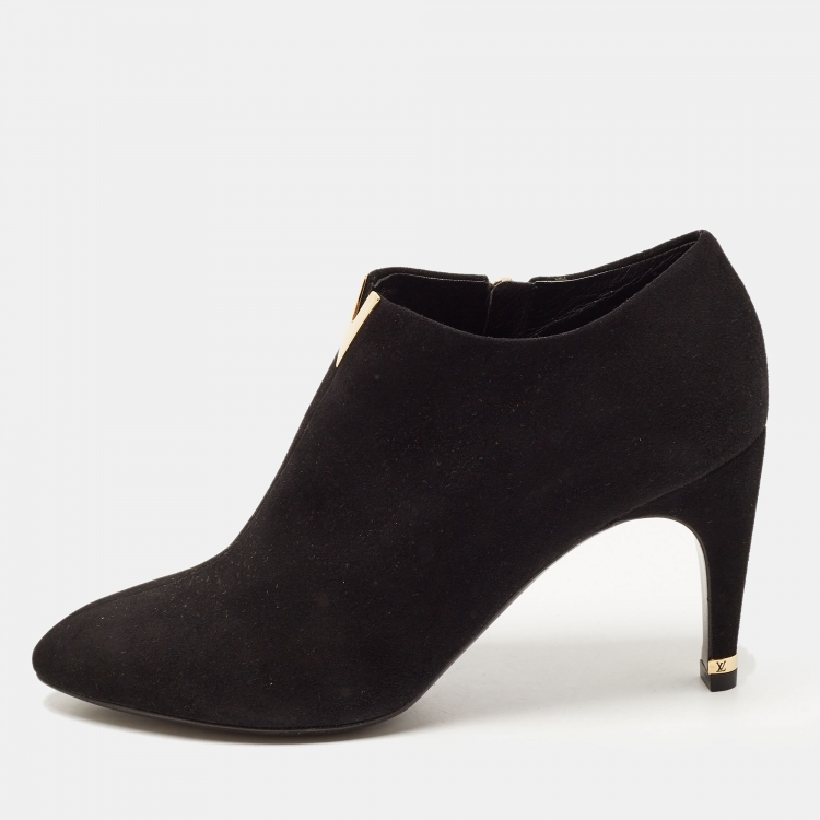 Louis Vuitton Black Suede V Logo Ankle Booties Size 37