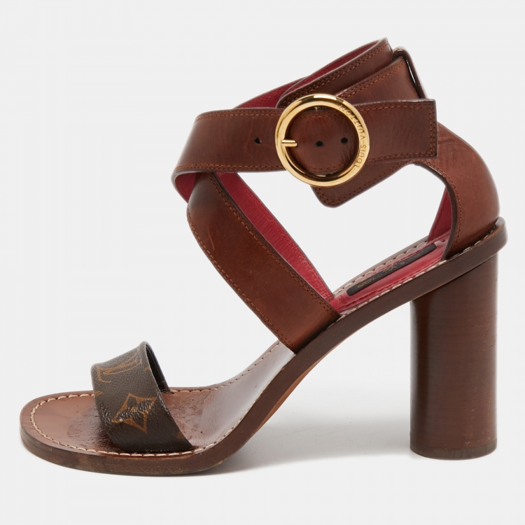 Pre Owned Louis Vuitton Brown Canvas, Leather Ocean Drive  Sandals Size 37.5