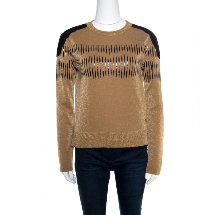 بلوفر لوي فيتون تريكو لوريكس بني رقع سويدي متباين قصير XS