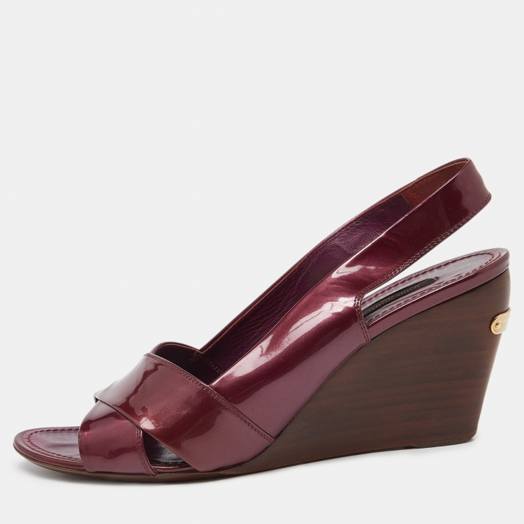 Louis Vuitton Burgundy Patent Leather Wedge Slingback Sandals Size 40