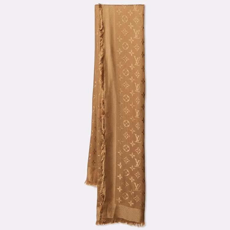وشاح لوي فيتون حرير وصوف مونوغرامي بني كراميل