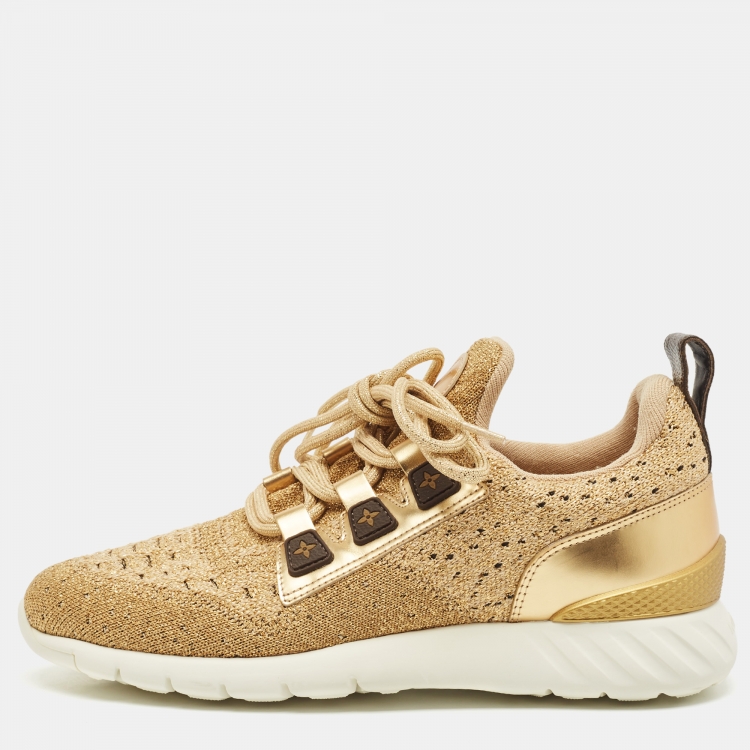 Louis Vuitton Gold Knit Fabric and Leather Aftergame Sneakers Size 38