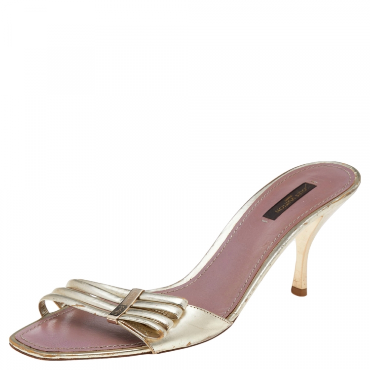 Pre Owned صندل سلايد لوي فيتون جلد ذهبي مقدمة مفتوحة مقاس 40