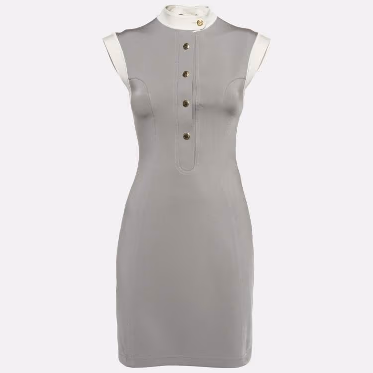 فستان لوي فيتون رمادي جيرسي مطاطي بدون أكمام ميني مقاس صغير - سمول