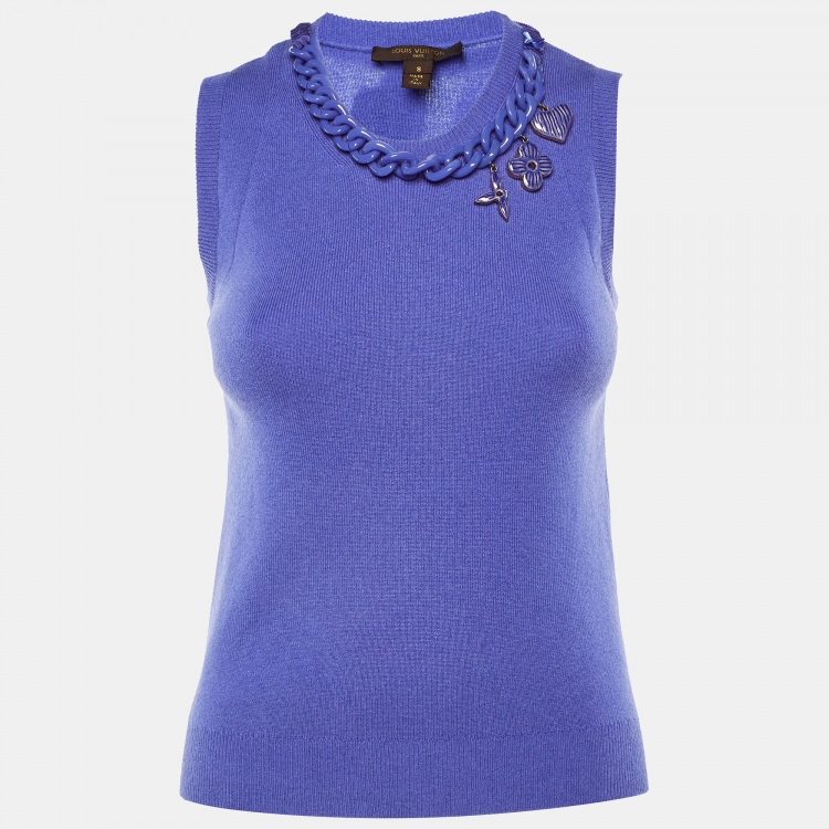 Pre Owned توب لوي فيتون كشمير لافندر بتفاصيل سلسلة رقبة بدون أكمام مقاس صغير (سمول)