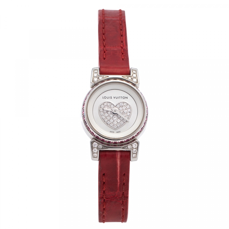 ساعة يد نسائية لوي فيتون تامبور بيجو كيو151أف ألماس جلد وسانلس ستيل صدف 18 مم