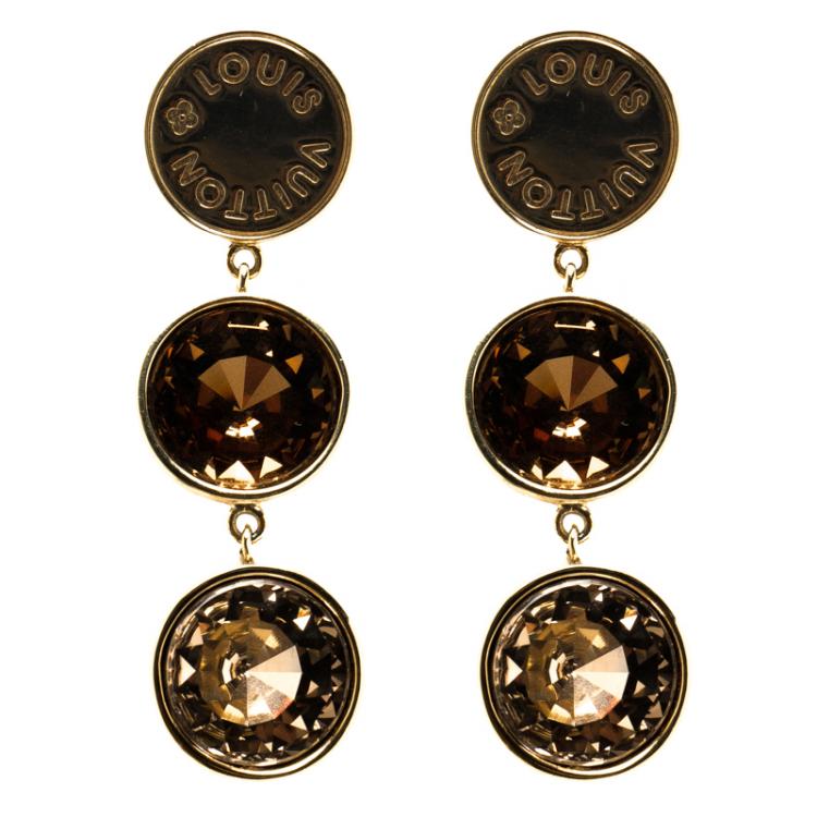 Pre Owned أقراط لوي فيتون اوفر ذا رينبو كريستال بني وذهبي اللون