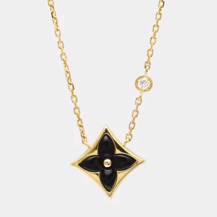 قلادة لويس فيتون باندنتيف ستار بلوسوم بي بي أونيكس ألماس ذهب أصفر 18 قيراط أونيكس ألماس موضة نسائية رجالية قلادة ذهب