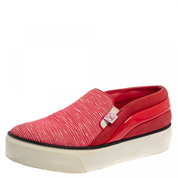 حذاء رياضي لوي فيتون سليب أون جلد و كانفاس أحمر مقاس 37