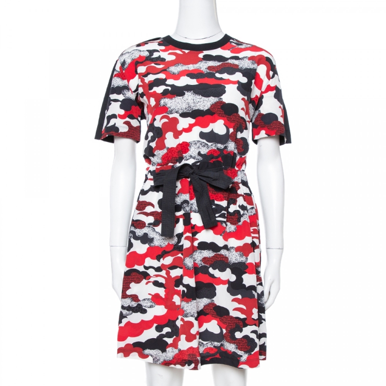 مملوكة مسبقًا فستان لوي فيتون رباط أمامي قطن و حرير مطبوع أحمر مقاس وسط (ميديوم)