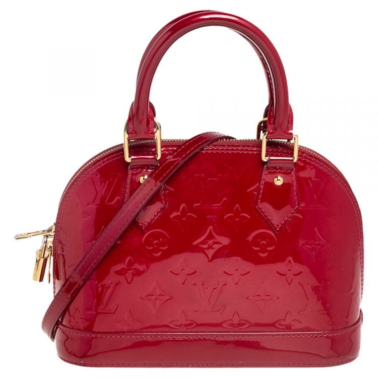 حقيبة لوي فيتون ألما جلد لامع مونوغرامي أحمر صغيرة