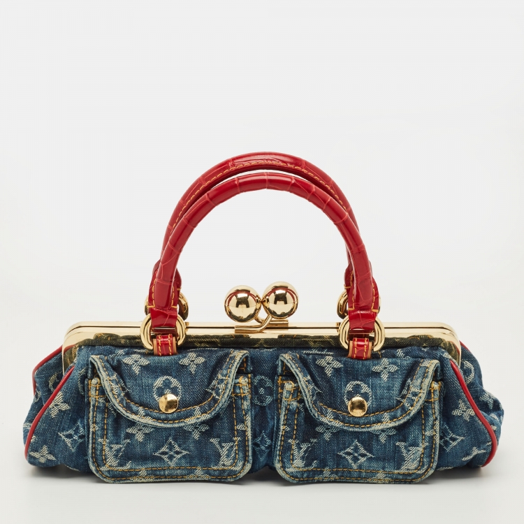 حقيبة لويس فيتون فيرمور جي إم جينز مونوجرامي أزرق/أحمر وتمساح