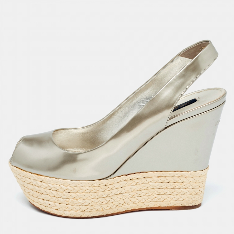 Louis Vuitton Silver Leather Lagoon Wedge Sandals Size 39