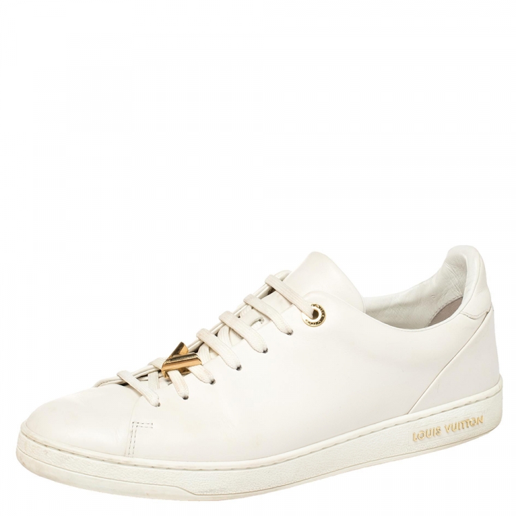 حذاء رياضي لوي فيتون فرونت رو بالشعار مزخرف جلد أبيض برباط مقاس 40