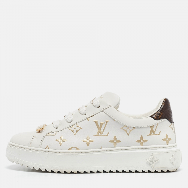 Louis Vuitton White/Gold Monogram Leather Time Out Sneakers Size 37.5