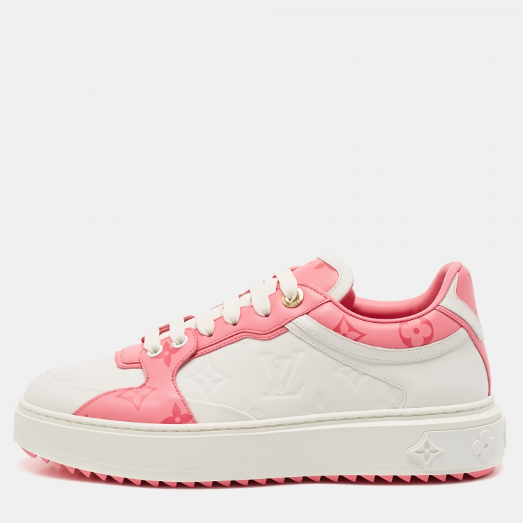 مملوكة مسبقًا حذاء رياضي لوي فيتون عنق منخفض تايم أوت جلد أبيض مقاس 38.5
