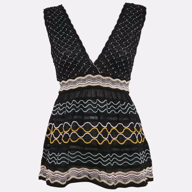 Pre Owned توب إم ميزوني تريكو أسود بنقشة بدون أكمام مقاس صغير - سمول