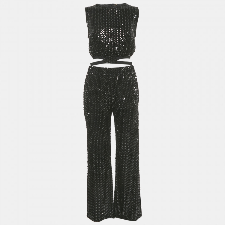 مملوكة مسبقًا Maje طقم توب قصير وسروال بترتر أسود صغير