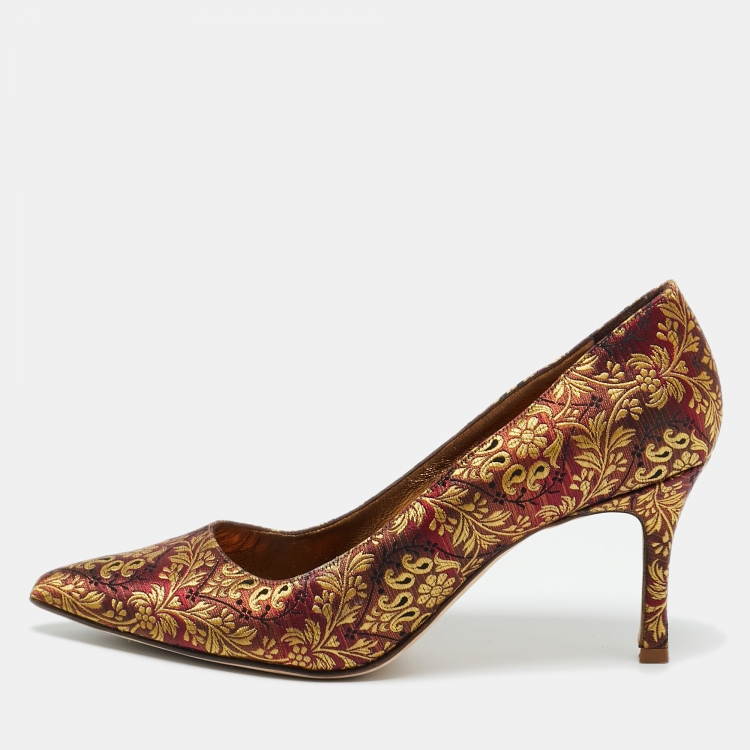 حذاء كعب عالي مانولو بلانيك زهري متعدد الألوان قماش مطبوع مقدمة مدببة مقاس 40