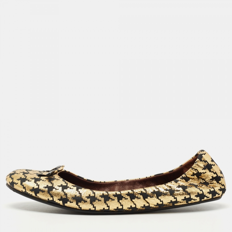 Marc Jacobs Gold/Black Leather Houndstooth Bow Ballet Flats Size 37