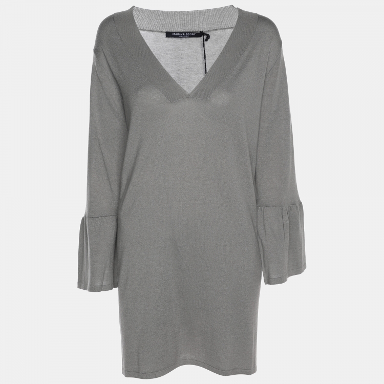 مملوكة مسبقًا قميص قطن رمادي ممتد بأكمام طويلة وياقة V مارينا سبورت من مارينا رينالدي مقاس كبير