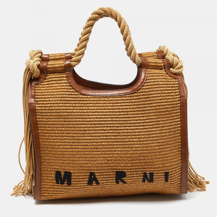 Marni Beige/Brown Raffia and Leather Tote