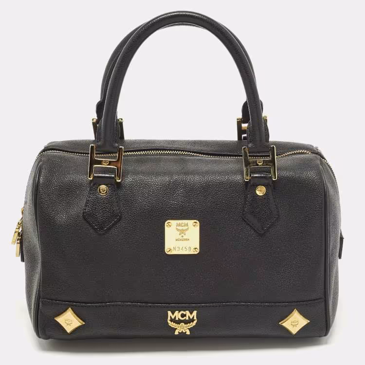 Pre Owned حقيبة إم سي إم ساتشل جلد أسود بسحاب صغيرة