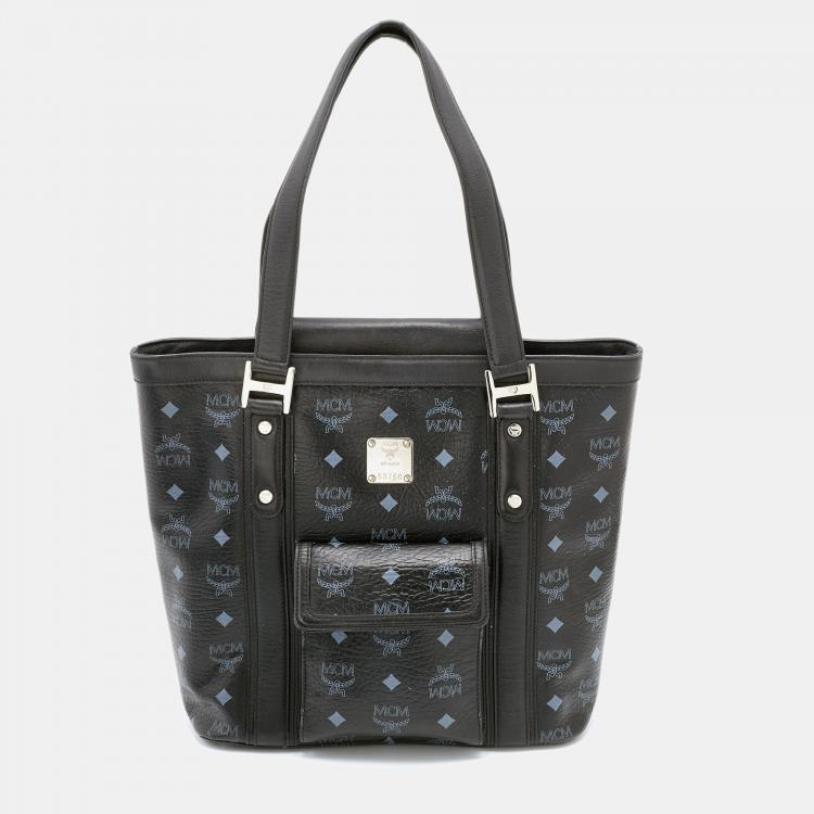 مملوكة مسبقًا حقيبة يد توتس إم سي إم جلد وكانفاس مقوى فيستوس أسود