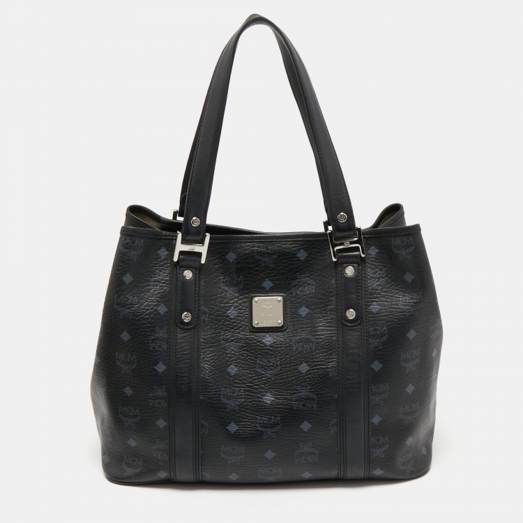 Pre Owned MCM Black Visetos Coated Canvas and Leather Tote