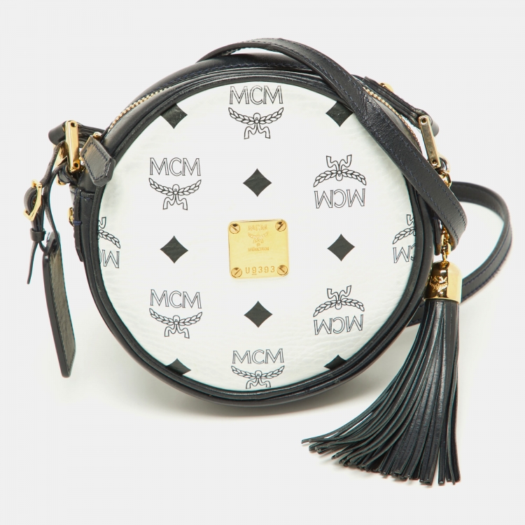 MCM Navy Blue/White Visetos Coated Canvas and Leather Tambourine Round Bag