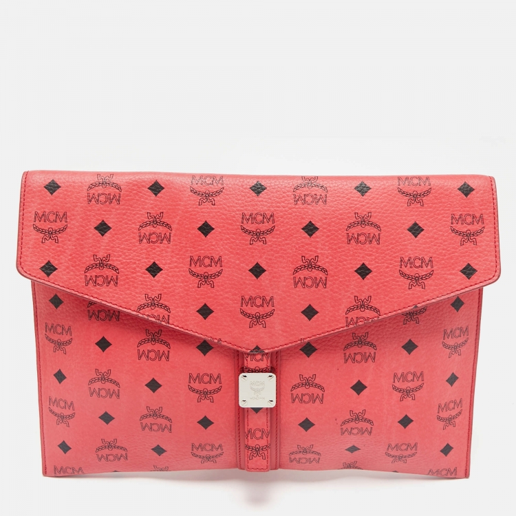 Pre Owned حقيبة ظرفية إم سي إم فيستوس جلد صناعي أحمر