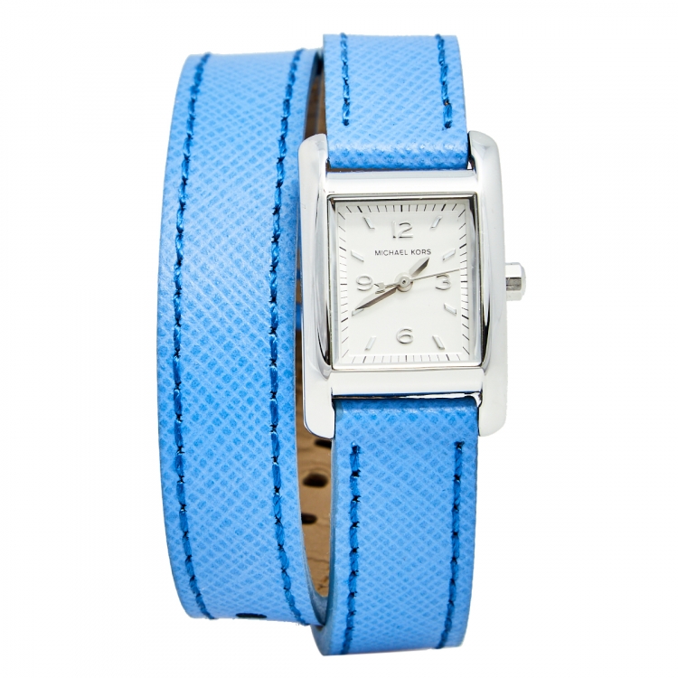Pre Owned Michael Kors Silver Stainless Steel Leather Taylor Mini MK2339 Women's Wristwatch 20 mm