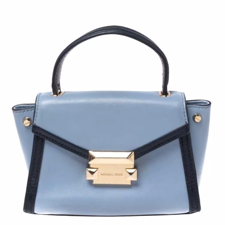 مملوكة مسبقًا حقيبة بيد علوية مايكل كورس ويتني جلد أزرق ثنائي اللون صغيرة