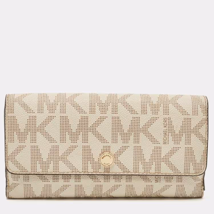 محفظة مايكل كورس توقيع قماش مطلي أبيض فاتح قابل للطي
