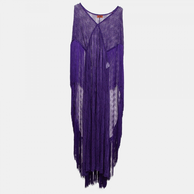 مملوكة مسبقًا Missoni Mare Purple Chevron Pattern Knit Fringed Maxi Cover Up Dress M