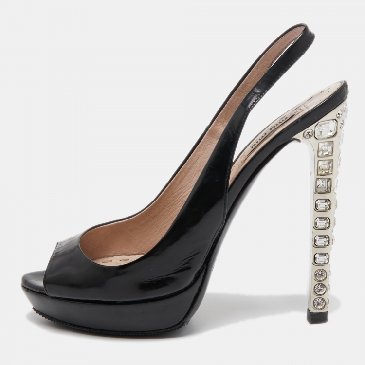 Miu Miu Black Leather Crystal Embellished Slingback Sandals Size 37