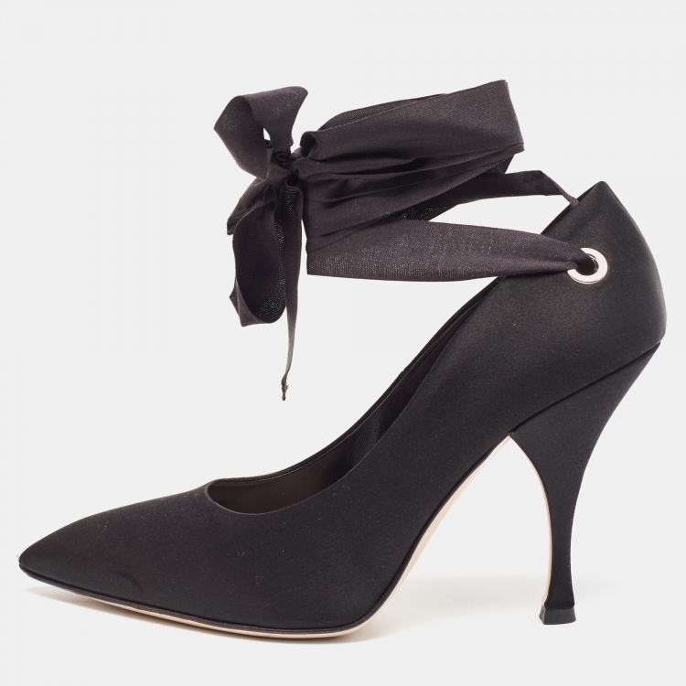 Miu Miu Black Satin Ankle Wrap Pumps Size 38.5
