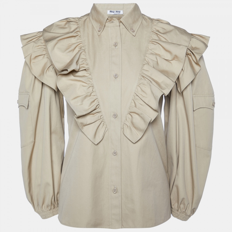 مملوكة مسبقًا Miu Miu Brown Cotton Ruffled Button Front Shirt XS
