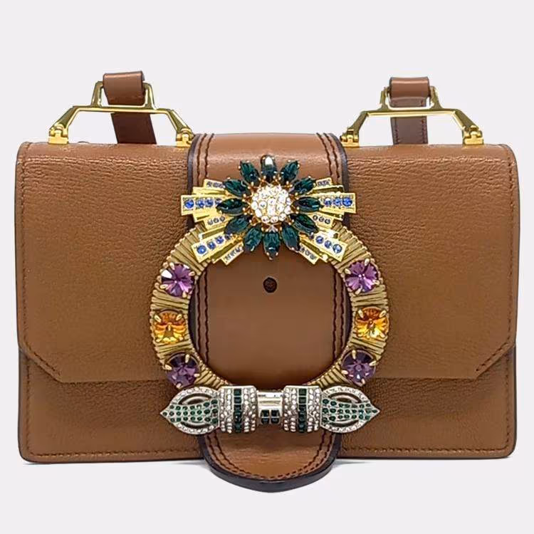 حقيبة يد جلدية بنية ميو ميو