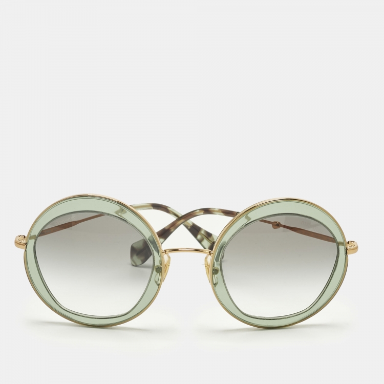 مملوكة مسبقًا نظارة شمسية ميو ميو SMU 50Q متدرجة خضراء/رمادية مستديرة