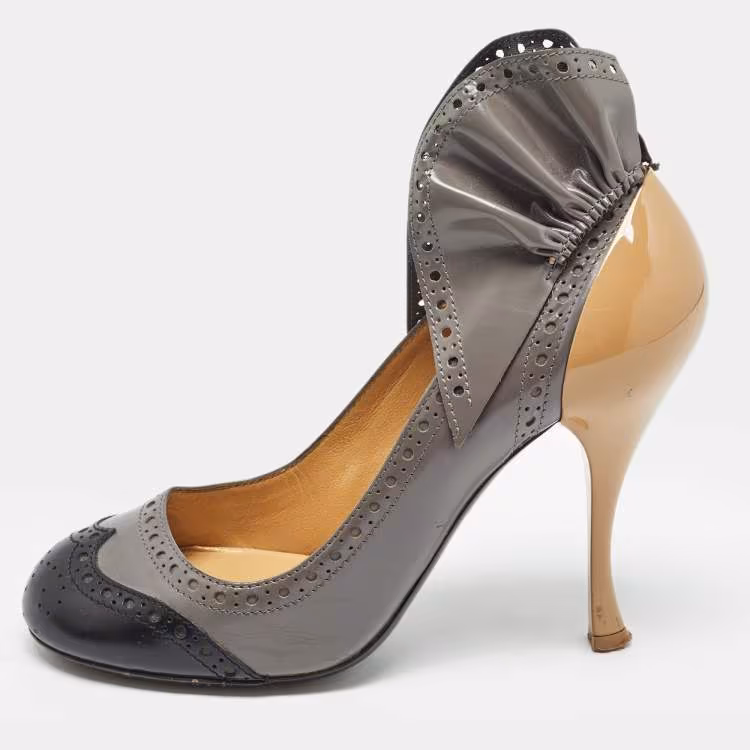 مملوكة مسبقًا حذاء كعب عالي ميو ميو جلد بروغ رمادي/أسود مقاس 35