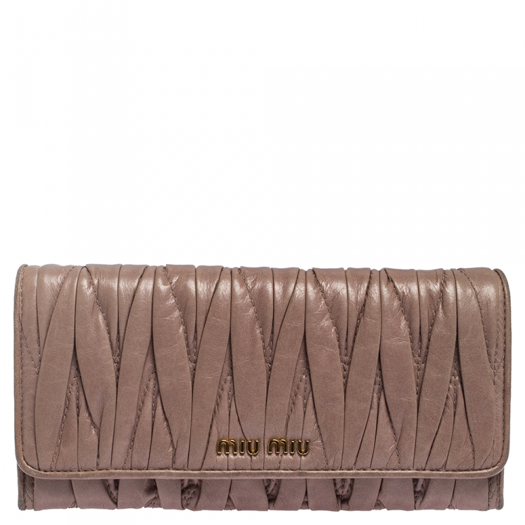 Pre Owned محفظة ميو ميو كونتيننتال جلد ماتيلاس وردي