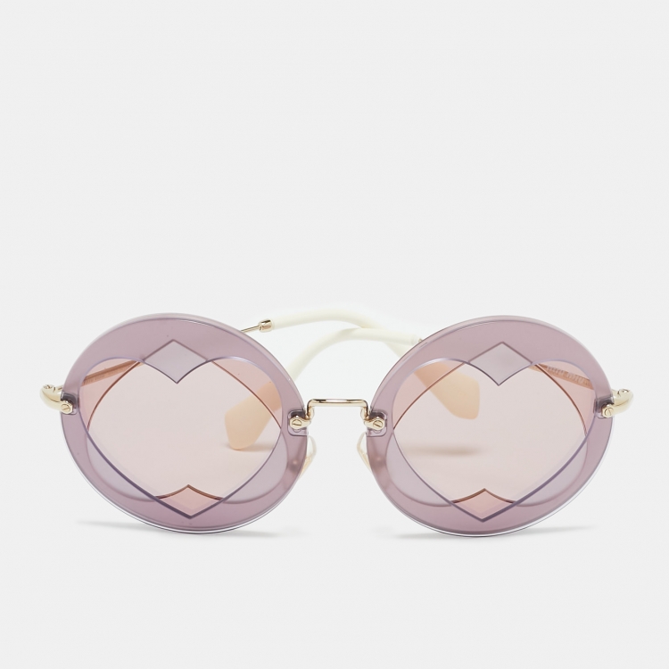 Pre Owned Miu Miu Purple/Pink SMU01S Cut Out Heart Round Sunglasses