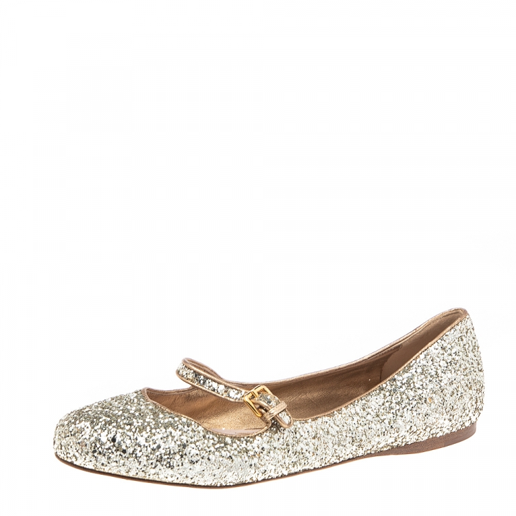 حذاء باليرينا فلات ميو ميو غليتر فضي مقاس 39