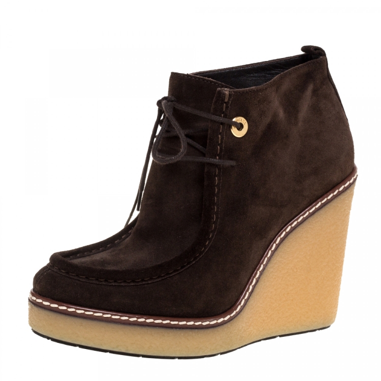 Pre Owned حذاء بوت كاحل مونكلر "سيلي" رباط علوي و كعب روكي سويدي بني مقاس 37