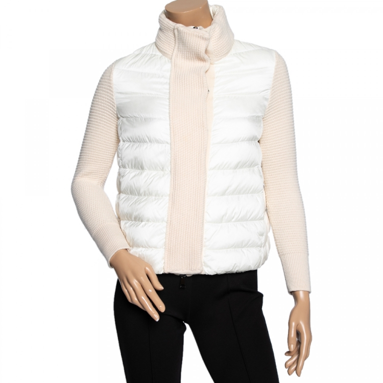 Pre Owned سترة كارديان مونسلير تريكو ماغولين صوف تريكو ومبطن كريمي مقاس صغير جداً - إكس سمول