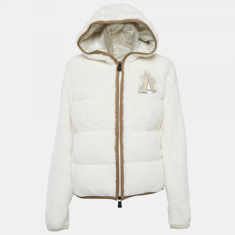 Pre Owned Moncler Grenoble Ivory Faux Shearling Down Maglia Cardigan Jacket L